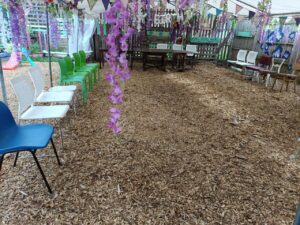 - Space only, outside but covered marquee 6m x 10m. Chairs, tables and decor as shown in pictures and 2 small sand pits included – £ 75 per hour 9am – 5pm, £85 per hour 6pm-10pm extended times may be available with advanced notice